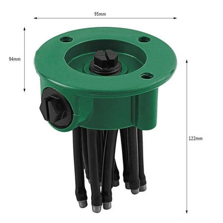 Aspersor de gradina multifunctional 360 grade Multifunctional Sprinkler dispune de 12 furtunuri flexibile semi-ajustabile, fiecare cu cate 3 orificii acestea pot dispersa apa la 360 de grade si poate fi instalat in diverse zone sau pozitii pentru randament sporit. Acest aparat de irigare multifunctionala pentru imprastiere a apei din gradina este accesoriul ideal daca aveti nevoie sa asigurati necesarul de apa in gradina, acesta este perfect pentru irigarea gazonului, legumelor, florilor. Sprinklerul pentru gradina 360 de grade poate fi alimentat cu apa lateral prin conectorul 1/2 sau prin spatele acestuia prin mufa 3/4. Acest aspersor multifunctional pentru gradina este prevazut cu un conector 1/2 cu fixare rapida pentru furtun iar cu ajutorul sau veti putea iriga o suprafata mare functionand la 360 grade. Fixarea aspersorului de gradina se poate face orizontal pe pamant cu ajutorul suportului special tip tepusa inclus in pachet sau il puteti fixa vertical cu suruburi sau dibluri datorita celor 3 gauri cu care este prevazut.Specificatii aspersor de gradina Multifunctional Sprinkler:- culoare: verde + negru- material: ABS + PVC- ideal pentru terase, curti, peluze, gradini...etc.- 12 tuburi flxibile a cate 3 orificii- se ataseaza la furtun de gradina standard.