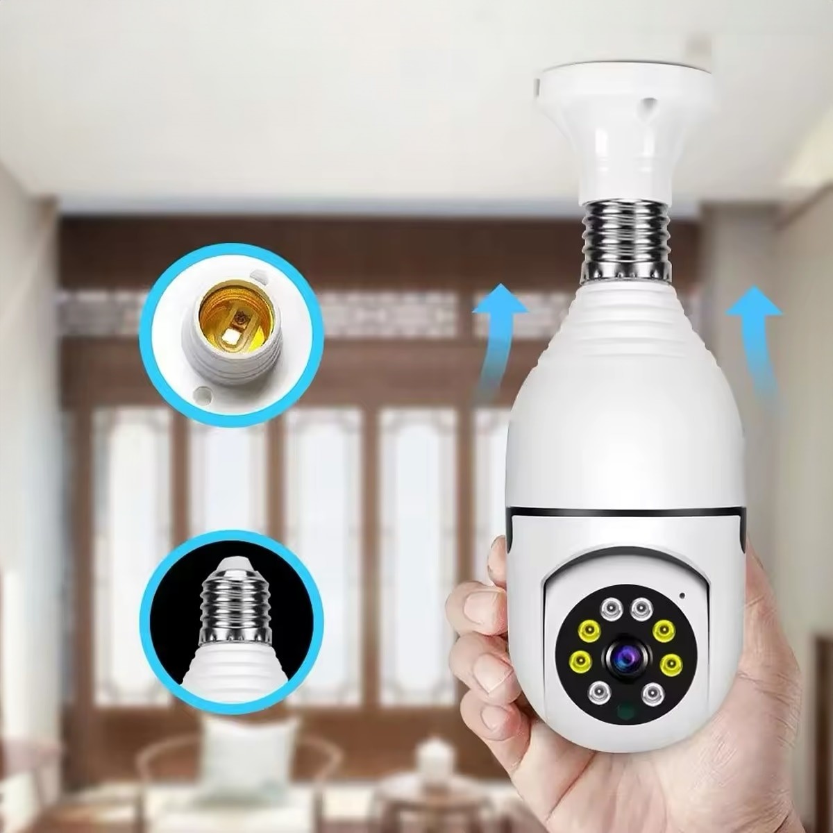 Dispune de o carcasa din plastic, microfon si difuzor incorporat, rezistenta la apa si praf conform standardului IP30, WiFi 150Mbps 802.11b/g/n 2,4GHz WPA, WEP 3db , si se monteaza camera intr-un soclu (fasung) E27 pentru a o alimenta cu electricitate.