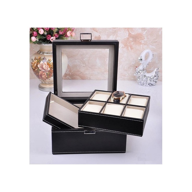Caseta organizare depozitare 6 ceasuri cu tavita bijuterii