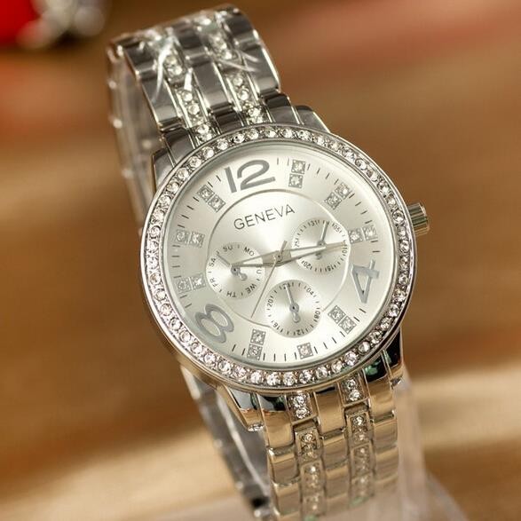 Ceas de dama Geneva Christal OMS Silver Gold metalic