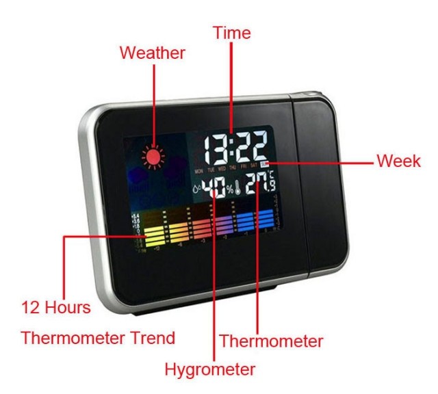 Multifuncțional și elegant, acest ceas digital inteligent combină alarmă, proiecție LED, termometru și higrometru într-un singur dispozitiv compact. Ideal pentru dormitor, living sau birou, oferă citire clară a orei și a temperaturii, chiar și pe timp de noapte, datorită luminii de fundal reglabilă și a proiecției pe perete sau tavan.