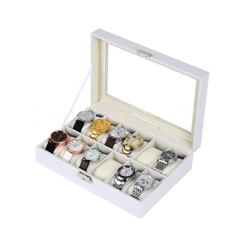 Cutie organizator depozitare 12 ceasuri piele PU