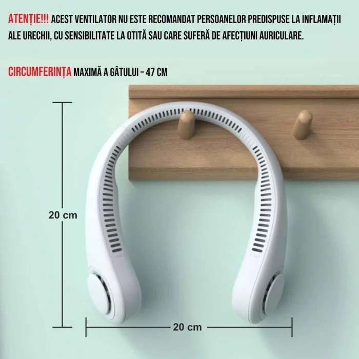 Descoperă confortul răcoros cu mini-ventilatorul portabil pentru gât, cu acumulator și 3 trepte de viteză!