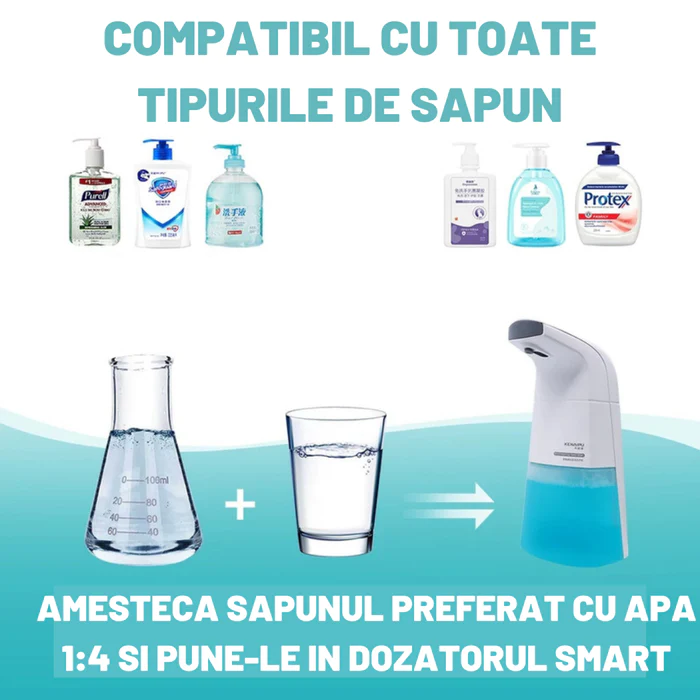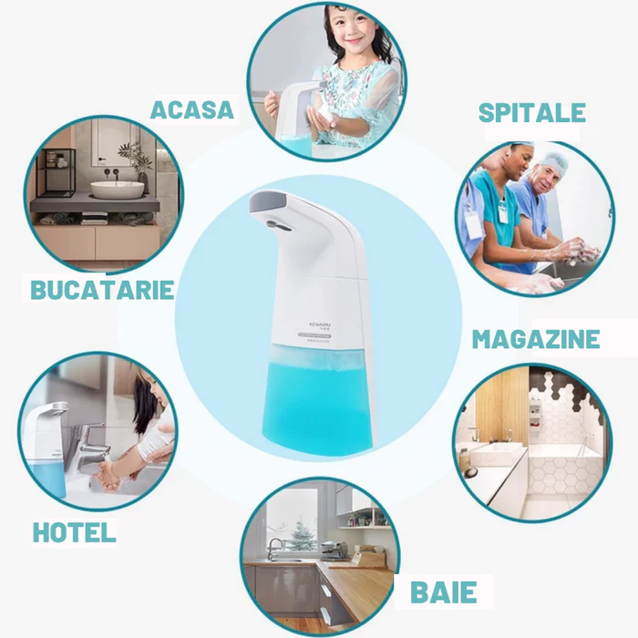 - Uita de sapunul traditional purtator de germeni! Dispenserul automat de sapun poate fi umplut si cu sampon, gel, detergent , aproape orice lichid de care aveti nevoie