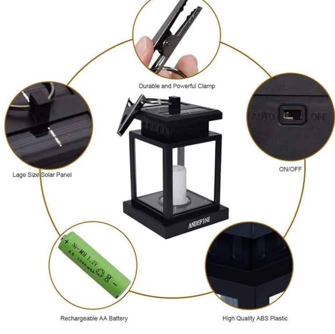 Senzor automat - Glisați comutatorul de jos pe „AUTO”, luminile felinarelor suspendate în aer liber se vor încărca automat în timpul zilei și se vor aprinde noaptea. Lampioanele cu LED alimentate cu energie solară emit o lumină galbenă slabă și continuă să clipească, așa cum vântul bate peste felinarele lumânărilor, creează un spațiu romantic și confortabil.