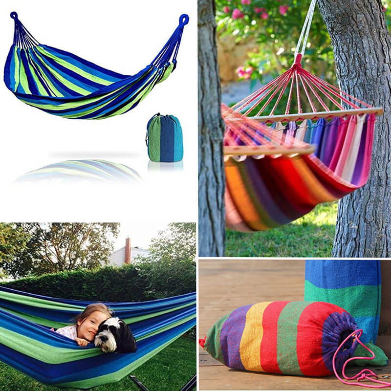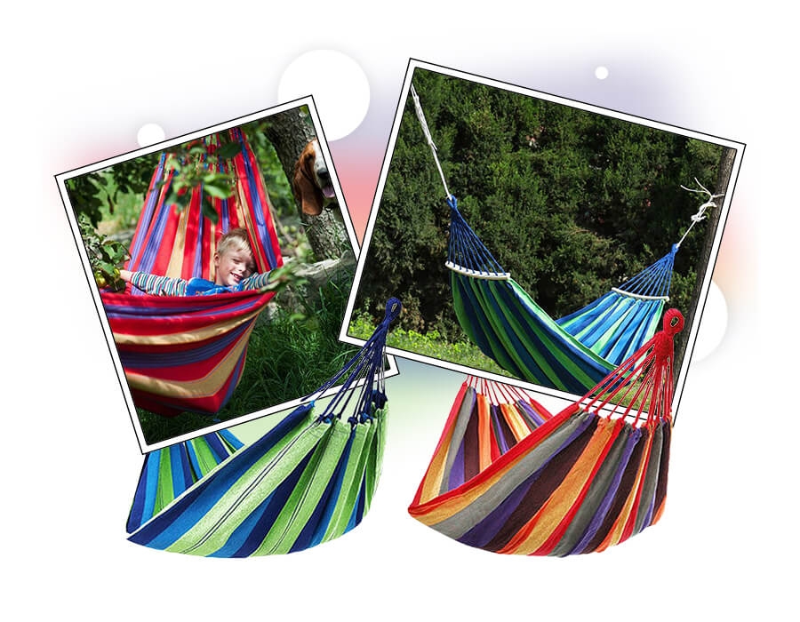- Pachetul include hamacul, sfoară pentru fixarea hamacului și un sac pentru păstrare
