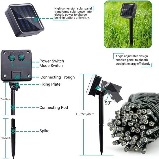 Instalație Solară Decorativă pentru Exterior – 30 m, 300 LED-uri Multicolore, Încărcare Solară