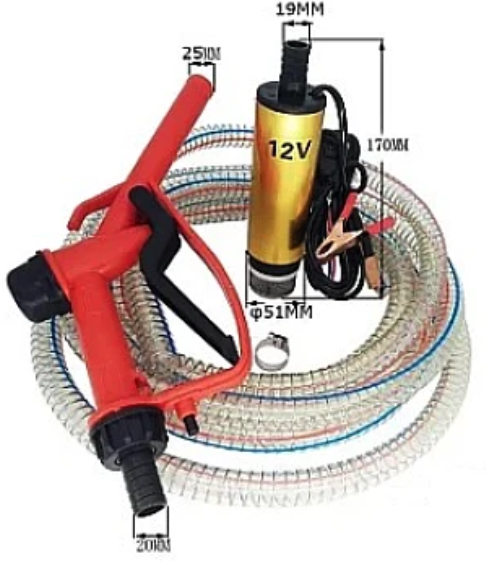 Pompă Electrică 12V: Pachetul include o pompă electrică de 12 volți, care este potrivită pentru transferul de benzină, motorină sau alte lichide în siguranță și eficiență.