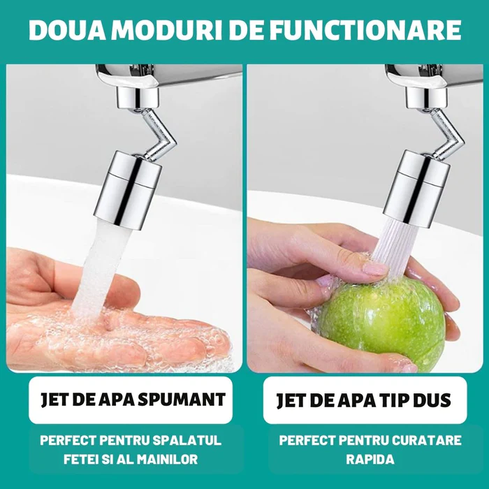 - Compatibil cu aproape orice tip de robinet (adaptor inclus)