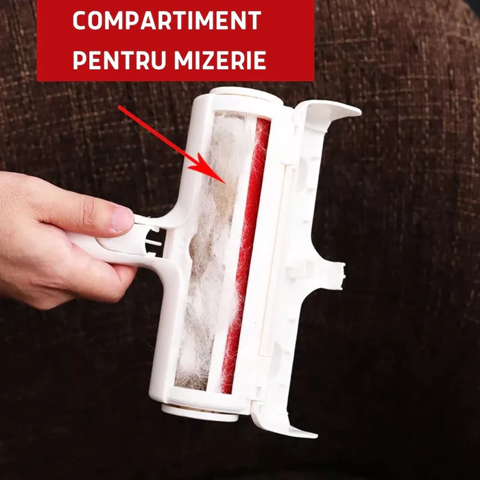 - Misca rola in fata si in spate iar parul si scamele vor fi adunte in compartimentul pentru mizerie