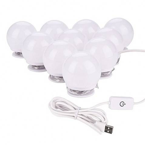 SET 10 BECURI PENTRU OGLINDA AUTOADEZIVE , ALIMENTARE USB, CONTROL INTENSITATE A LUMINII