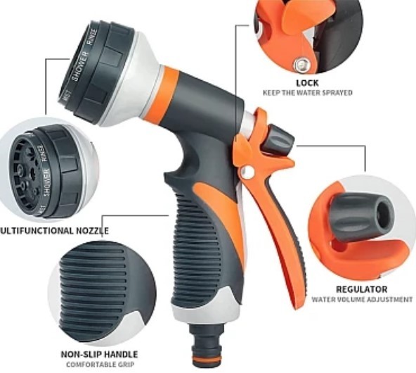 Setul de pistol pentru irigat grădina cu 8 moduri și mufă rapidă este un instrument versatil și eficient pentru îngrijirea grădinii dumneavoastră.