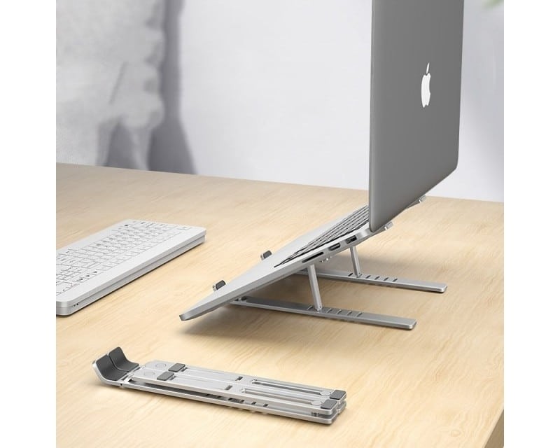 Suportul pentru laptop oferă un confort mai mare și îmbunătățește răcirea. Accesoriul are o construcție ușoară din aluminiu, cu posibilitatea de pliere și reglare. Vă permite să ridicați dispozitivul în diferite unghiuri, ceea ce se traduce prin ergonomie îmbunătățită și menținerea unei poziții sănătoase în timp ce lucrați la un laptop.