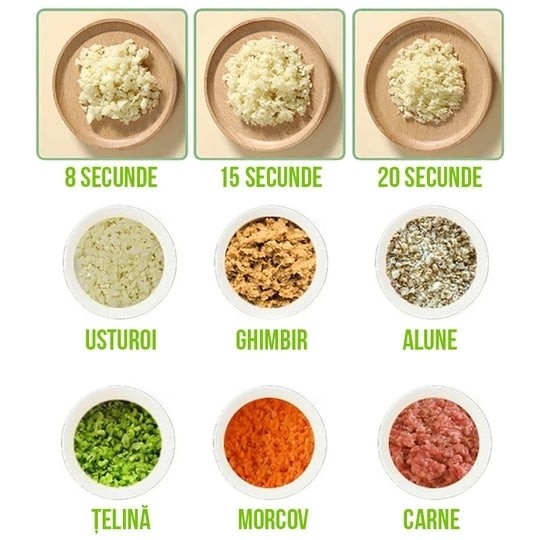 Cu acest maruntitor electric de legume 4-in-1, portabil si fara fir pregatesti cu usurinta o varietate de ingrediente pentru gatit, economisind timp si efort.