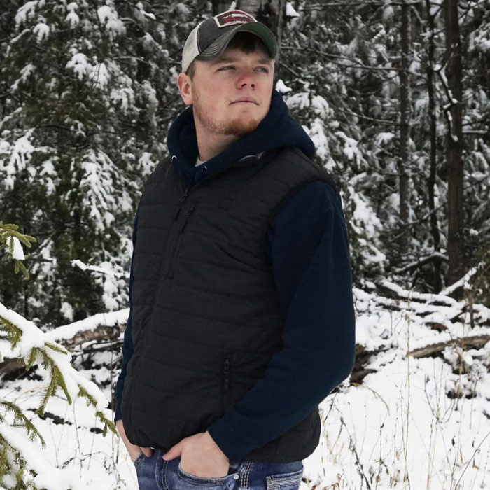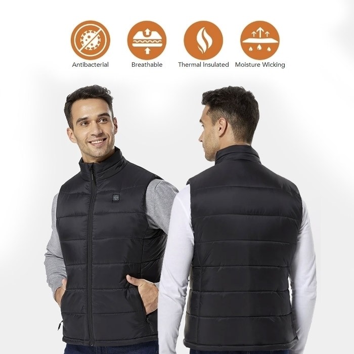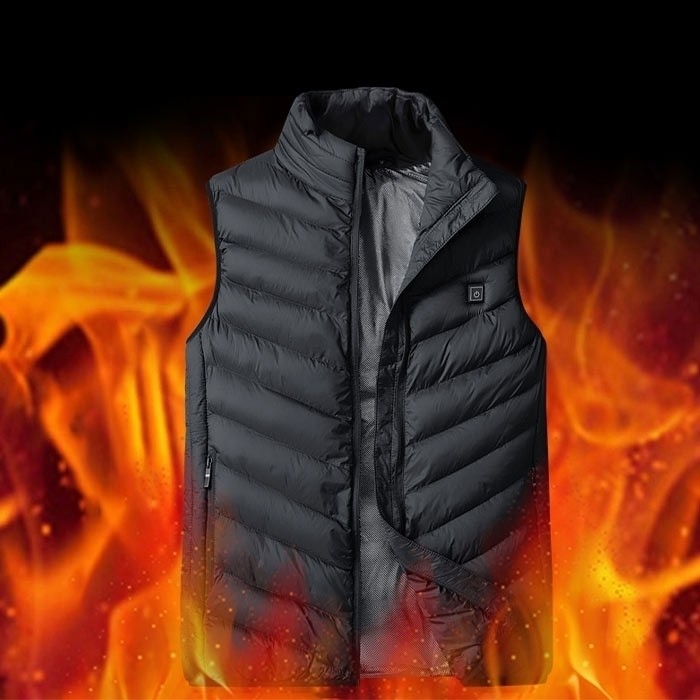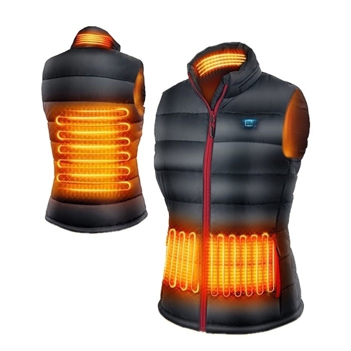 Heatvest nostru este fabricat din poliester, centrul este format cu umplutură de bumbac, iar materialul exterior este o țesătură impermeabilă. Țesătura cu trei straturi poate reține mai bine căldura. Jacheta încălzită este perfectă pentru activități în aer liber precum camping, drumeții, schi, pescuit sau purtarea de zi cu zi.
